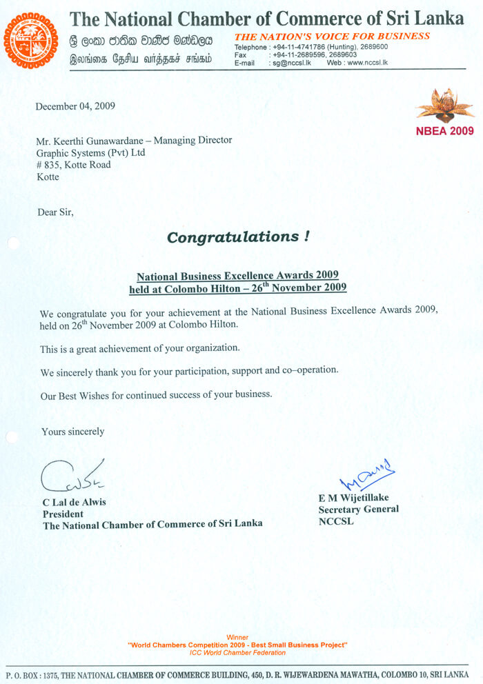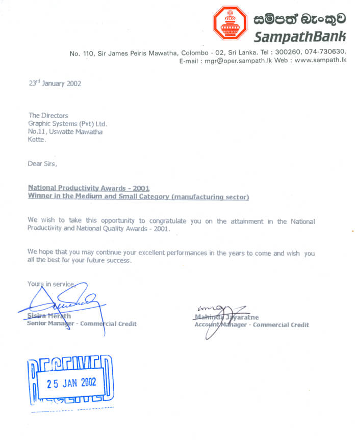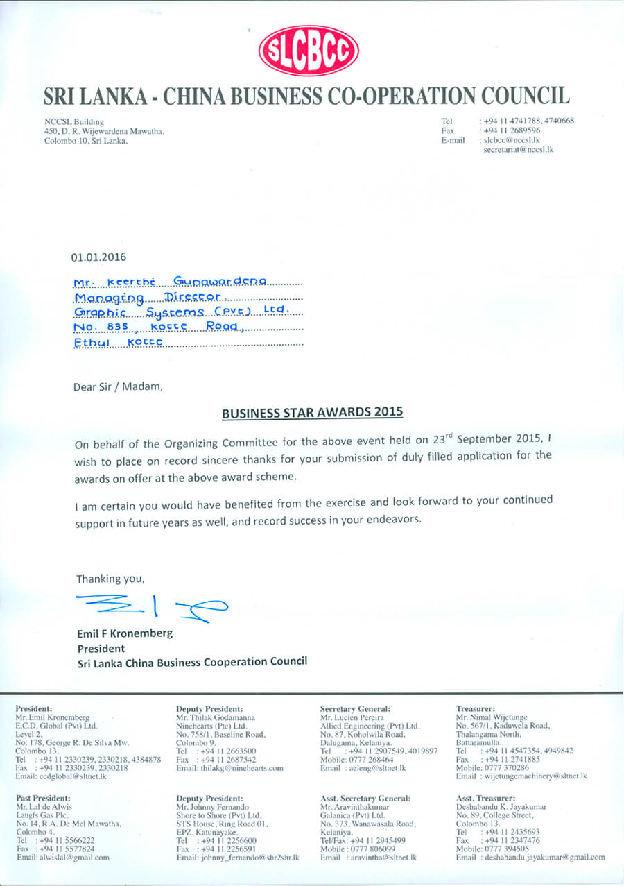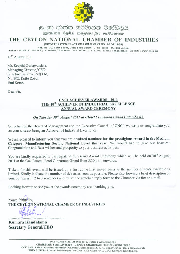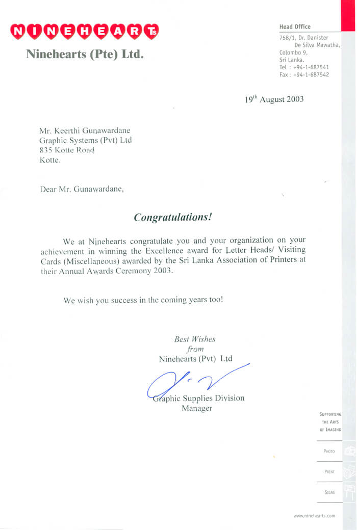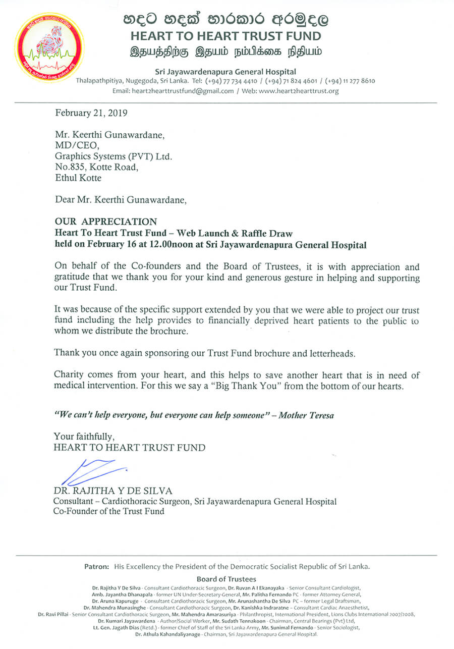 “At the end of a very successful programme, I wish to extend my sincere thanks and appreciation to you for your assistance and support towards the overall success of the ‘President Meets President programme’, by way of printing all our material meticulously. (Both Programmes).“