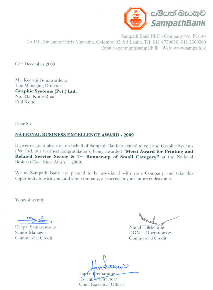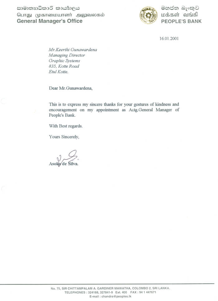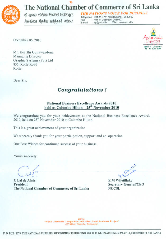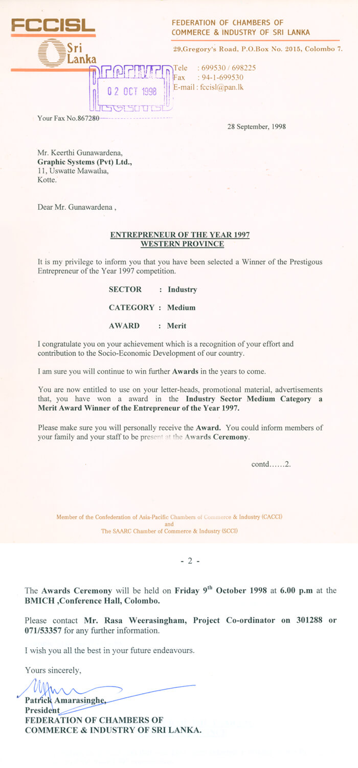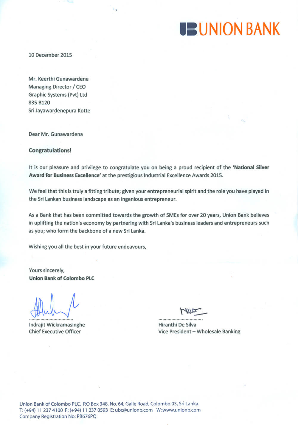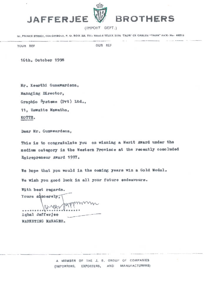 “At the end of a very successful programme, I wish to extend my sincere thanks and appreciation to you for your assistance and support towards the overall success of the ‘President Meets President programme’, by way of printing all our material meticulously. (Both Programmes).“