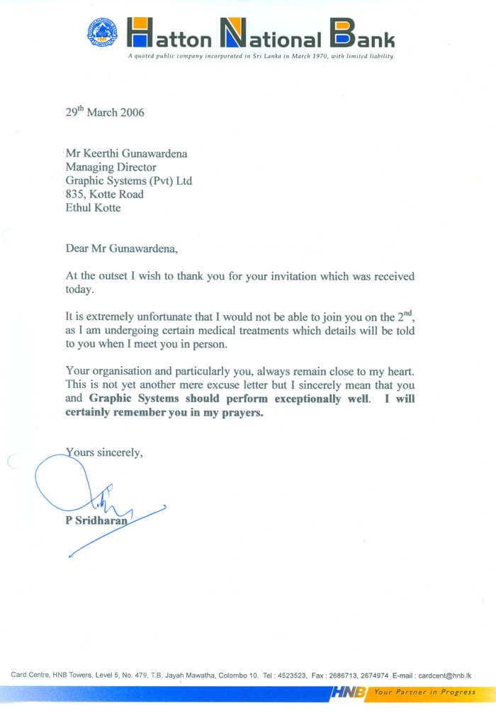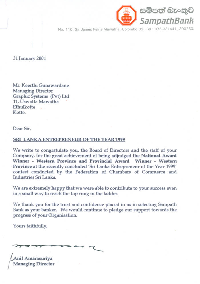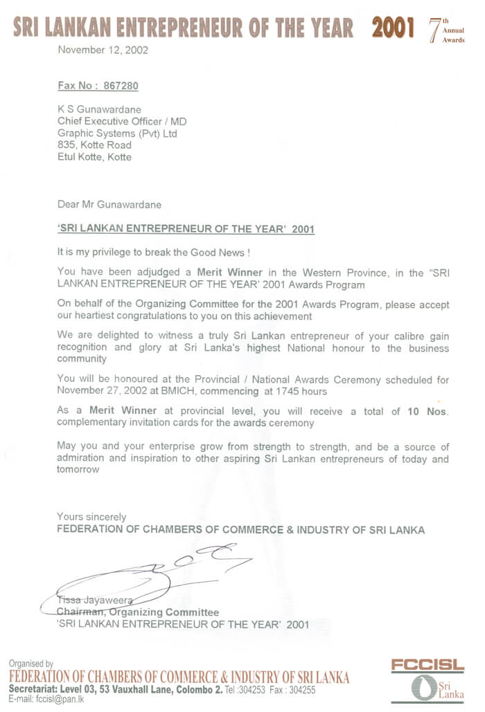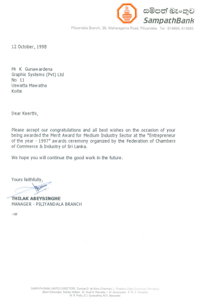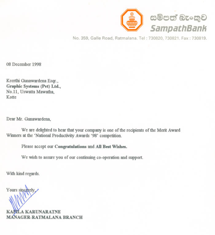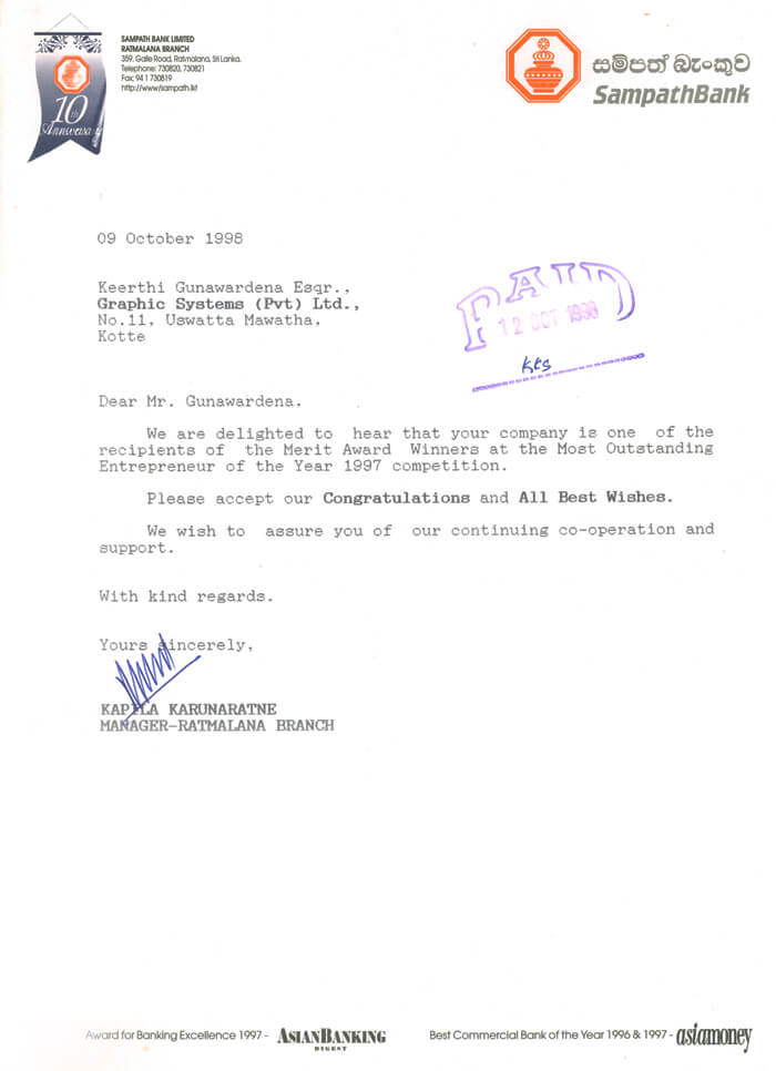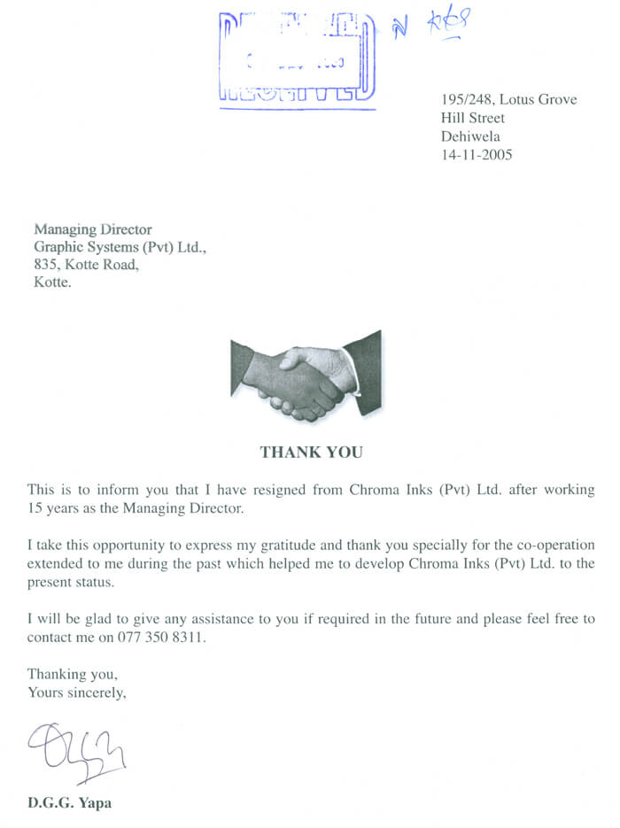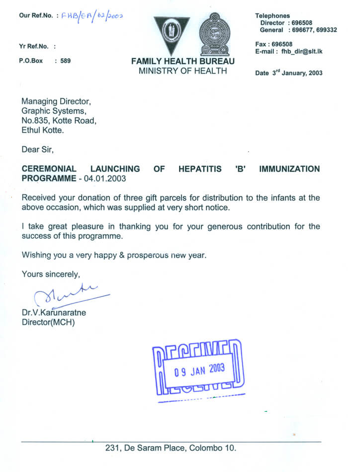 “At the end of a very successful programme, I wish to extend my sincere thanks and appreciation to you for your assistance and support towards the overall success of the ‘President Meets President programme’, by way of printing all our material meticulously. (Both Programmes).“